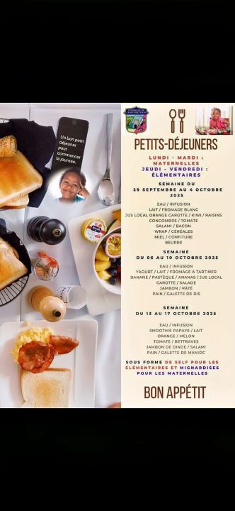Je vous prie de trouver en pièce jointe les menus des petits-déjeuners pour la période de septembre/octobre 2025.