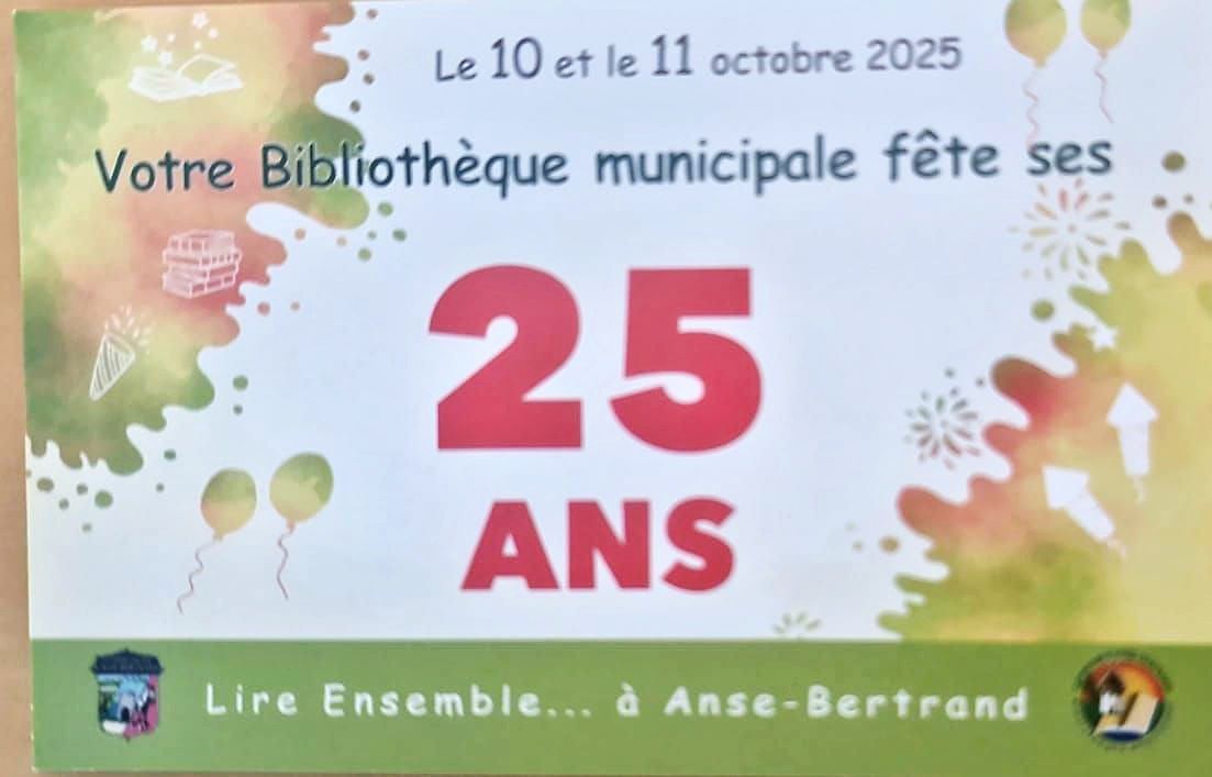 INVITATION - ANNIVERSAIRE BIBLIOTHEQUE DE L'ANSE-BERTRAND - 10 et 11 octobre 2025